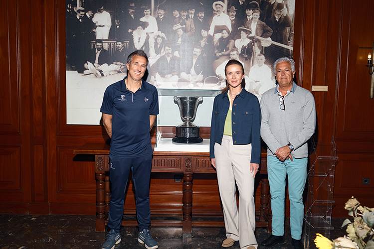 En la imágen, Svitolina posa junto a nuestro presidente, Ole Andresen, y el director deportivo, Pepe Aupí, frente a la emblemática Copa Faulconbridge, uno de los símbolos más representativos de nuestra entidad.